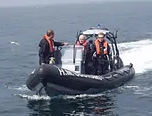 The Cornish Maiden (which belonged to Berriman[8]) motored to a position 12 miles off Hartlepool, where it anchored and made ready for trade.[9] By this time, a 42-metre (138 ft) Customs cutter was waiting, and stayed in attendance throughout daylight hours. Hartlepool residents who came out to buy goods were followed back to shore by a Customs RHIB from the cutter. Potential buyers were scared off when Customs then announced that they would "seize any boat that visited" the Cornish Maiden.[10] From then on, no sales were made, except to journalists and cameramen from national newspapers. These media people bought token amounts of goods, but on arrival onshore, these goods were either seized or extra duty demanded. There were no further sales, and after the cutter gave warning that another storm was imminent, the Cornish Maiden packed up and headed for port.