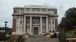 Oglebay Hall is a historic classroom building associated with the West Virginia University and located at Morgantown, Monongalia County, West Virginia. It was built in 1918, and is a three-story, brick and concrete building with Classical Revival detailing. The front facade features four Doric order columns that support a pediment with a false, concrete railing and entablature with the building's name. It also has balconies with cast iron balustrades. It originally housed the university's College of Agriculture (until 1961) and represents the university's heritage as a land-grant institution. The building is named for industrialist and philanthropist Earl W. Oglebay, whose house at Wheeling, West Virginia is known as the Oglebay Mansion Museum.[2]