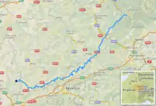 listen)) is a river of Eastern France. It is a left tributary of the Saône, which it joins in Pontailler-sur-Saône. Its source is in Haut-du-Them-Château-Lambert in the Vosges Mountains near the Ballon d'Alsace. Its length is 214 km (133 mi)[1] and its basin area is 2,308 km2 (891 sq mi).