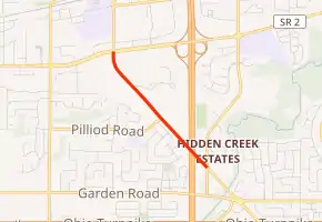 SR 326 began at an intersection with Holland–Sylvania Road. The route headed northwest for about one mile (1.6 km) until curving to the north, crossing over Wolf Creek, and ending at SR 2 which was also known as Toledo–Wauseon Road.[1][2] The entire route was in Springfield Township, though the northern terminus was located just outside the village limits of Holland.
