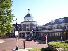 The historic College Green is the central quadrangle lawn and location of significant campus buildings: Manasseh Cutler Hall, the Office of the President; Wilson Hall, the College of Arts and Sciences; McGuffey Hall, named for William McGuffey; and the College Gateway.[37] These three original primary structures are featured elements of the official current university logo and maintain true to their original design of over 200 years ago. The College Green has changed little in the past two centuries, which contributes to the university's colonial appearance. The green, inspired by the university founders, is based upon the classic layout of traditional English and New England towns and similar to university quadrangles.[38]