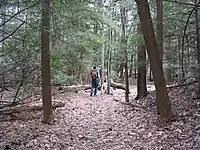 The first known group of people to inhabit the Ohiopyle area were the Monongahela, a clan of the Mound Builders. These Native Americans disappeared from the scene just as European colonists were beginning to arrive in North America. As the east coast was settled, the Native Americans who lived closer to the Atlantic Ocean were exterminated or forced to flee to the west. Various tribes inhabited the Ohiopyle area at this time, preceding their ultimate removal following the French and Indian War. One of the few remnants of American Indian culture that can be found in the area is in the name. "Ohiopyle" is derived from the Lenape phrase ahi opihəle which means 'it turns very white',[4][5] referring to the frothy waterfalls.[6]
