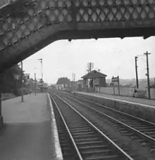 The station opened in 1871 when the London and South Western Railway (LSWR) extended its line from Sampford Courtenay. Services were extended further west to Lydford with the inauguration of Meldon Viaduct in 1874.[1] Constructed to rival the South Devon Railway route to Plymouth, the completion of the LSWR's own route to Plymouth saw Okehampton become an important junction with lines to Padstow and Bude as well as Plymouth. Boat trains carrying passengers from ocean liners calling at Stonehouse Pool, Plymouth and prestige services such as the Atlantic Coast Express and Devon Belle all used the route. From 1961 to 1964 it was the terminus of a car-carrying train from Surbiton.