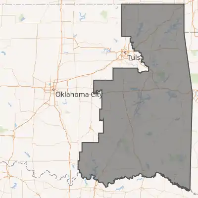 The northern half of the district includes most of the area of Oklahoma referred to as Green Country, while the southern half of the district includes a part of Oklahoma often referred to as Little Dixie. It contains the majority of lands in the Choctaw Nation and the Cherokee Nation, as well as smaller parts of the Creek and Chickasaw nations.