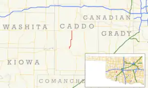 - Oklahoma Department of Transportation (n.d.). Control Section Maps: Caddo County (PDF) (Map) (2010–2011 ed.). Scale not given. Oklahoma City: Oklahoma Department of Transportation. Retrieved November 12, 2012.