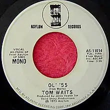 "Ol' '55" is a song by American musician Tom Waits. It is the opening track and lead single from Waits' debut studio album, Closing Time, released in March 1973 on Asylum Records. Written by Waits and produced by Jerry Yester, "Ol' '55" was a minor hit. It has been described as more conventional than Waits' later songs.[1] The title, "Ol' '55", refers to the singer's vehicle, almost certainly the legendary 1955 Cadillac Waits owned. Although it could refer to other 1955 model year American cars.