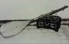 Another craft, about which there are very few data available, is that of musical instruments production. We know only that in Gjakova used to live in the second half of the 19th century the well-known singer and musician Ramadan Gunga, who supported his family by his craft of a master of musical instruments production, such as sharkhis, two-stringed lutes, etc., that his beautiful sharkhis were decorated with a mother-of-pear eagle and with ivory spots, that he had a shop and that on the market day he played nice melodies to advertise his ware. We also know that his pupil and later his friend, the singer and instrumentalist, Din Bakija, had made himself a sharkhi and a personal box. This craft was practiced, along with their basic vocation, also by the carpenters and wood-carvers, who mostly dealt with mending the broken instruments, such as the well-known master in Gjakova, Rasim Tullumi. He had acquired his basic knowledge on the features of different kinds of wood that he used in different parts of a musical instrument, from his father Malush. In the production and repair of musical instruments Rasim was aided by his brother Ymer, who, as an instrumentalist of bugan (sort of a musical instrument), his father Malush, had brought him from Istanbul, participated in the musical group of Ymer Riza.[10]