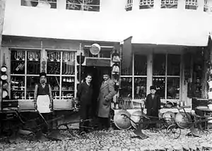 The oldest way of making the white woollen caps with a log (block) (taslak), that was used until the end of the 19th century, was called the "Gjakovar” way (fashion), which differed way from the most perfect way of "Tirana" with two logs (blocks) (taslaks), which started being practised also in Gjakova around the end of 19th century and beginning of the century. The foreman of white woolen cap makers’ guild in Gjakova, which was not as strong as the others in the time of Turkey, was mentioned to have been Jup Bakalli. The Craftsmen Chamber of Gjakova had registered 16 white woollen cap shops before the World War II.[5]