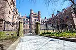 In 1870, Yale President Noah Porter announced the "gradual abandonment and removal of the present buildings of the Brick Row," beginning with the construction of Farnam Hall.[5] From 1870 to 1928, the college undertook a wholesale reconfiguration of its campus, tearing down the Old Brick Row and its satellites and erecting a perimeter of Victorian Gothic student dormitories around a central enclosure.[5] Where before it had been most prestigious to live off campus, the new dormitories became fashionable as the preserve of seniors. When Yale's residential colleges were opened in 1933, the Old Campus transitioned to a home for the common Freshman Year, with upperclassmen living in the colleges.