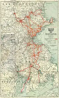 The Old Colony Street Railway Company (Old Colony St. Ry.) was a horse-drawn and electric streetcar railroad operated on the streets of Boston, Massachusetts and communities south of the city. Founded in 1881 as the Brockton Street Railway Company, via lease and merger it became a primary mass transit provider for southeastern Massachusetts and Rhode Island. Its immediate successor was the Bay State Street Railway, and its modern successor is the state-run Massachusetts Bay Transportation Authority (MBTA).[1]
