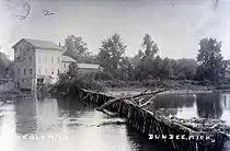 Referred to as the oldest and most notable landmark in Dundee, it is the Dundee Historic District's only inclusion (along with the surrounding park) on the opposite of the river from the rest of the downtown area. While the facility itself was not built until the 1849, the dam upon which it is located was first constructed in 1827 and rebuilt in 1846. It is the largest of several dams located along the River Raisin — the majority of which are in nearby Monroe.[3]