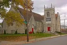 The Global Community United Methodist Church, formerly the North Methodist Church, was built on the corner of High Street and Wilcox Street in 1874, but was destroyed by a fire in 1929. Despite economic hardships of the Great Depression, the church was rebuilt 12 years later and dedicated on September 27, 1942 by Bishop H. Lester Smith.[10]