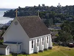 Old St. Hilary's Landmark is a former mission church place of worship and now a historic landmark owned and maintained by the Belvedere-Tiburon Landmarks Society, Tiburon Peninsula, Marin County, California, United States.[2] The landmark is situated on the flank of the Tiburon Hills, an area characterized by serpentine soils and hence has a distinct plant community. The area surrounding the church is a Marin County protected area, the Old Saint Hilary's Open Space Preserve. The church building was listed on the National Register of Historic Places in 2020.[1]