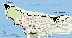 ![]() Location of Old San Juan (in yellow) within the city of San Juan. | |
