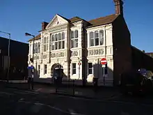 The building was acquired by a firm of wine merchants in 1963, when the company that had developed it was wound up.[13] The town hall was then acquired by a property developer and let to the Co-op in 1991, before being restored with funding from English Heritage in 1994.[14] In the early 21st century, it was occupied by a firm of solicitors,[15] and, in September 2020, it re-opened as a shop known as "Harbord's Artisan Vintage Emporium".[16]