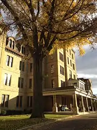 The W.H. Jones Mansion, Central Assurance Company, East Broad Street Commercial Building, and Orebaugh House, all represent "over half a century of distinct architectural styles". The Jones House sits on a stone foundation, with a slate roof, gables set above a circular tower flanked by tall, decorated chimneys. The Central Assurance Insurance Company is a 1940s Art Deco style building. Next to it is the Tudor style half-timbered 1920s mixed use East Broad Street Commercial Building, which housed the Jong Mea Restaurant. The downstairs portion was the family-run restaurant and the upstairs was the family's residence. Finally, the Orebaugh House, an 1880s Italianate home with a L-shaped porch and frieze style windows.[10]