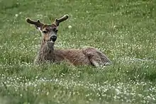 The park also provides habitat for many species (like the Roosevelt elk) that are native only to the Pacific Northwest coast. As a result, scientists have declared it a biological reserve and study its unique species to better understand how plants and animals evolve. The park is home to sizable populations of black bears and black-tailed deer. The park also has a noteworthy cougar population, numbering about 150.[17] Mountain goats were accidentally introduced into the park into the 1920s and have caused much damage on the native flora. The NPS has activated management plans to control the goats.[18] The park contains an estimated 366,000 acres (572 sq mi; 1,480 km2) of old-growth forests.[19]