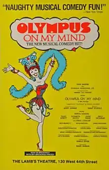 Olympus On My Mind is a musical with music by Grant Sturiale and a book and lyrics by Barry Harman, based on Heinrich Von Kleist's adaptation of Plautus' Amphitryon. The musical ran Off-Broadway at Lamb's Theatre for 297 performances in 1986. It was also staged that year in a regional production in Fairfield, Connecticut by the Boston Post Road Stage Company.