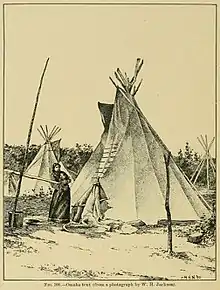 The Omaha revere an ancient Sacred Pole, from before the time of their migration to the Missouri, made of cottonwood. It is called Umoⁿ'hoⁿ'ti (meaning "The Real Omaha") and considered to be a person.[15] It was kept in a Sacred Tent in the center of the village, which only men who were members of the Holy Society could enter. An annual renewal ceremony was related to the Sacred Pole.[14]