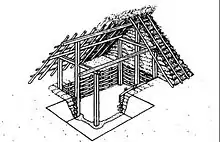 The location of Ommen itself proved particularly suitable for settlement — not only because of the fertile river soil and the higher ground of the river dune (even today the church square is visibly higher than the streets to its east and south), but also because of the ford in the Vecht facilitating trade routes between the Frisian north and Twente to the south. Archeological discoveries indicate that the first settlement in Ommen itself emerged during the 8th century CE, and by the end of the 11th century a veritable town had developed — among the first in Overijssel.[7] The first permanent settlers in Ommen were mixed crop-livestock farmers who also engaged in river trade and innkeeping. Most of these first settlers were probably of Saxon origin, though the Salians who dominated the banks of the IJssel also influenced the region economically, politically and religiously. The first houses in Ommen were hutkommen: wooden houses of which the ground floor was typically around half a meter below the ground. A church was built at the heart of Ommen around 1150 and was soon after replaced by a stone church, indicating further growth of the settlement. Written records first mention Ommen as de Vmme in 1133 and as Ummen in 1227.[8]
