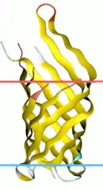The structure consists of an eight-stranded Up-And-Down Beta-Barrel. The strands are connected by four extracellular loops and three intracellular turns.[4]