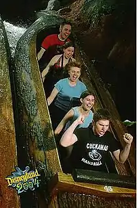 An on-ride camera is a camera mounted alongside the track of a roller coaster, log flume or other thrill ride that automatically photographs all of the riders on each passing vehicle. They are often mounted at the most intense or fastest part of the ride, resulting in humorously distorted expressions due to fear or wind resistance. The pictures are then available for viewing and purchase as a souvenir.