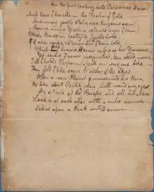 Keats' generation was familiar enough with the polished literary translations of John Dryden and Alexander Pope, which gave Homer an urbane gloss similar to Virgil, but expressed in blank verse or heroic couplets. Chapman's vigorous and earthy paraphrase (1616) was put before Keats by Charles Cowden Clarke, a friend from his days as a pupil at a boarding school in Enfield Town.[2] They sat up together till daylight to read it: "Keats shouting with delight as some passage of especial energy struck his imagination. At ten o'clock the next morning, Mr. Clarke found the sonnet on his breakfast-table." The poem was first published in The Examiner on 1 December 1816.