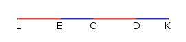 It is clear then, that both lines are double the length of the original line ED, that LH has its centre at E (see adjacent red lines), and HK its centre at D. Note, additionally, that EH (which is equal to CD) carries the common divisor (or unit) N, an exact number of times, as does EC, and therefore, by inference, CH too. It remains then to prove that A applied at E, and B applied at D, will have their centre of gravity at C.