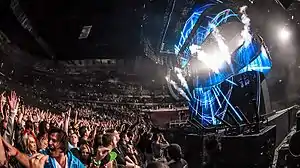 On September 24, 2012, Swedish House Mafia announced the dates for their farewell tour appropriately named "One Last Tour". The tour kicked off in November 2012 and concluded in March 2013.[1] The tour was taken across the world with the group performing in Russia, India, and South Africa for the first time.[2] Tickets sold out in minutes and due to extremely high demand, additional shows were added.[3] Part of the tour saw the trio play three nights at Stockholm's Friends Arena, performing to over 100,000 people across the three nights of November 2012. This marked their first and only performances on Swedish soil.[4]