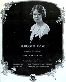 One Way Street is a 1925 American drama film directed by John Francis Dillon and written by Earl Hudson, Mary Alice Scully, and Arthur F. Statter. It is based on the 1924 novel One Way Street by Beale Davis. The film stars Ben Lyon, Anna Q. Nilsson, Marjorie Daw, Dorothy Cumming, Lumsden Hare, and Mona Kingsley. The film was released on April 12, 1925, by First National Pictures.[1][2][3]