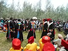 The Ongkor Festival (Standard Tibetan: འོང་སྐོར་, Wylie: 'ong skor, or Serkor (སེར་སྐོར་) in some dialects) is one of most important Tibetan festival of the Tibetan lunar year. Ongkor is usually held at the end of summer. The meaning of the festival's name is "good wishes for harvest", literally "making a circle around the field". During this festival, one person from each family in the village participates in kora in the fields. People in the procession dress in traditional clothes and play different roles—warriors, riders, drummers, those praying, or monks. In some regions Tibetan opera, dancing to drums and horse racing is performed. During this festival, many different aspects of traditional Tibetan culture are shown, including singing, dancing, the art of debate, dressing and praying.