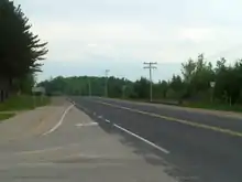 In 1952, the southern 17.8 kilometres (11.1 mi) of the route, along the east side of Lake Couchiching via what is now Simcoe County Road 44, was transferred to local municipalities and a new, longer route was designated to the east, merging with Highway 12 north of Brechin.[8][9] This routing remained in place until May 15 1976, when the province redirected the southern portion of Highway 69 along the route of Highway 103, between Waubaushene and Foot's Bay, in order to create a more direct route between Toronto and Sudbury. The route of Highway 69 between Foot's Bay and Brechin was consequently renumbered as Highway 169.[2]