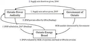 - Ontario Ministry of Energy. 2006. Directives to OPA. http://www.energy.gov.on.ca/english/pdf/electricity/1870_IPSP-June132006.pdf. Retrieved 5 April 2007; See Also: Ontario Power Authority. 2005. Supply mix summary. http://www.powerauthority.on.ca/Page.asp?PageID=122&ContentID=1139&SiteNodeID=139. Retrieved 5 April 2007. Archived 4 January 2007 at the Wayback Machine