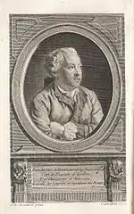 During his second period as director, Monnet continued to work with Favart and Noverre, and Boucher designed and built a substantial new theatre for the company of the Foire Saint-Laurent in 1752. The theatre was later installed in a wing of the Hôtel des Menus-Plaisirs on the rue Bergère, where it was used by the Opéra in 1781,[13] and then as the first concert hall of the Paris Conservatory, which was founded on the same site in 1795.[14] The new theatre was especially important, as it enabled the company to perform at times when the fair was not in operation. Monnet's friend Jean-Joseph Vadé wrote the libretto for Les troqueurs, first staged in July 1753 and advertised as a translation of an Italian work. The music was actually original, composed by Antoine Dauvergne, and began a period of new works in a more Italian style in which music played a much more significant role. Composers for the company during this period included Egidio Duni, François-André Danican Philidor and Pierre-Alexandre Monsigny.[11][12]