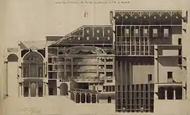 Cross-section, drawing by the architect Charles Joachim Bénard, 1784