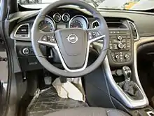 The Opel Cascada is a front-engine, front-wheel drive, two-door, four-passenger subcompact fabric-roof convertible,[4] manufactured and marketed by Opel across a single generation for model years 2013-2019,[5] prioritizing year-round touring comfort over sportiness.