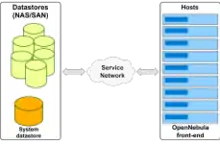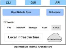 OpenNebula is a cloud computing platform for managing heterogeneous distributed data center infrastructures. The OpenNebula platform manages a data center's virtual infrastructure to build private, public and hybrid implementations of Infrastructure as a Service. The two primary uses of the OpenNebula platform are data center virtualization and cloud deployments based on the KVM hypervisor, LXD system containers, and AWS Firecracker microVMs. The platform is also capable of offering the cloud infrastructure necessary to operate a cloud on top of existing VMware infrastructure. In early June 2020, OpenNebula announced the release of a new Enterprise Edition for corporate users, along with a Community Edition.[2] OpenNebula CE is free and open-source software, released under the Apache License version 2. OpenNebula CE comes with free access to maintenance releases but with upgrades to new minor/major versions only available for users with non-commercial deployments or with significant contributions to the OpenNebula Community.[3] OpenNebula EE is distributed under a closed-source license and requires a commercial Subscription.[4]