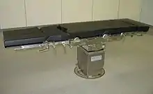 An operating table, sometimes called operating room table, is the table on which the patient lies during a surgical operation.[1] This surgical equipment is usually found inside the surgery room of a hospital.[2]