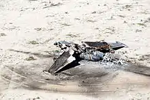 In August 1988, a Su-25 piloted by Colonel Alexander Rutskoy was hit by anti-aircraft fire and crashed. Rutskoy ejected but landed on Pakistani soil where he was captured and later repatriated to the Soviets. Some sources state he was shot down by Pakistani warplanes.[6] The aircraft's wreckage was reportedly salvaged by Pakistan and handed over to the United States.[7] In October of that year, a Su-25 sustained a powerful hit at high-altitude north of Gardez, heavily damaging it but remaining flyable. The strike was reportedly the result of a missile fired by a Pakistani fighter jet.[8]