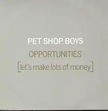 "Opportunities (Let's Make Lots of Money)" is a song by English synth-pop duo Pet Shop Boys from their debut studio album, Please (1986). It was released as a single in 1985 and re-recorded and reissued in 1986, gaining greater popularity in both the United Kingdom and United States with its second release, reaching number 11 on the UK Singles Chart and number 10 on the US Billboard Hot 100. After a Super Bowl ad in February 2021, featuring the song, it re-entered the charts claiming the Billboard Dance/Electronic Digital Songs No. 1 spot on February 27, 2021, among others.