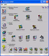 - Modules. This modelled the screens, reports and other application components. Mostly used for screens, because of the availability of code generation for Oracle (Developer) Forms. It was common for