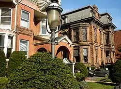 The Orange Street Historic District encompasses a large residential in the East Rock section of New Haven, Connecticut. Roughly bounded by Orange, Cottage, Eagle, State, and Audubon Streets, this area saw growth between about 1830 and 1900, and includes a broad diversity of well-preserved 19th-century residential structures. It was listed on the U.S. National Register of Historic Places in 1985.[1] At that time, it included 546 buildings deemed to contribute to the historic character of the area.[2]