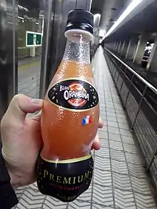 Orangina (French pronunciation: [ɔʁɑ̃ʒina]) is a lightly carbonated beverage made from carbonated water, 12% citrus juice (10% from concentrated orange, 2% from a combination of concentrated lemon, concentrated mandarin, and concentrated grapefruit juices), as well as 2% orange pulp.[1][2] Orangina is sweetened with sugar or high fructose corn syrup (glucose fructose) and natural flavors are added.[3]