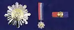 (left: Order medal; middle: smaller decorative version; right: Order ribbon)[2]
