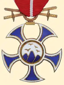 The establishment of the Order of the Falcon in 1919 resulted from a proposal in September 1918 by the Minister of War Milan Rastislav Štefánik (hence the unofficial name)[2] [3] and was intended to recognise achievements that contributed to the liberation of Czechoslovakia. Membership of the order was primarily conferred upon members of the Czechoslovak Legions who served in Siberia during the Russian Civil War.[1] The order was short-lived as all Czechoslovak orders were abolished in 1919, soon after the Czechoslovak Republic declared independence; they were 'regarded as undemocratic'.[1] One of the most famous officers to be appointed a Knight of the Order of the Falcon was Major General Jan Syrový.[4][5] During the Russian Civil War, Syrový commanded all anti-Bolshevik forces in Siberia from October 1918 to January 1919[4][6] and, in September 1938 as the Czechoslovak Prime Minister, he was forced to accept the terms of the Munich Agreement.[7]