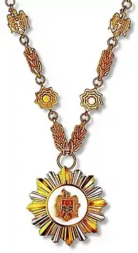 The Order of the Republic (Romanian: Ordinul Republicii) is Moldova's highest order. It is awarded by the President of Moldova for exceptional merits in all fields which benefit Moldova and humanity as a whole. The order was established in July 1992 and it's collar and badge are made from silver.