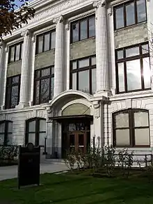 In the early years of the Supreme Court, business was conducted at a variety of locations in downtown Salem.[30] The first public building to house the court was the Territorial Capitol Building in Salem that was built between 1854 and 1855.[31] In that building the courtroom was in a chamber measuring 20 feet by 27 feet on the first floor.[31] On December 29, 1855, after the building was partially occupied, it burned to the ground.[17] In 1876, the state finished construction on a second capitol building where the court was located on the third floor.[32] This courtroom measured 54 feet by 46 feet, while the state law library was 75 feet by 70 feet.[32] A separate building was built by the state in 1914 to house the Supreme Court, and this is now the oldest building on the Capitol Mall after the second capitol building burned down on April 25, 1935.[33][34]