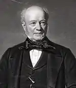 Throughout 1825, Secretary of State for Foreign Affairs George Canning held discussions with Governor Pelly of the HBC as to a potential settlement with the United States. Pelly felt a border along the Snake and Columbia Rivers was advantageous for the United Kingdom and his company.[11] Contacting American minister Rufus King in April 1826, Canning requested that a settlement be reached over the Oregon dispute. Gallatin was appointed Ambassador to the United Kingdom and given instructions by Secretary of State Henry Clay in July 1826 to offer a division of the Pacific Northwest along the 49th parallel to the British.[12] In a letter to Prime Minister Lord Liverpool in 1826, Canning presented the possibilities of trade with the Qing Empire if a division of the Pacific Northwest was to be made with the Americans. He felt the recognition of American rights to ownership of Astoria, despite its continued use by the NWC and later HBC, was "absolutely unjustifiable."[13] This diplomatic courtesy Canning felt weakened the territorial claims of the United Kingdom. A border along the Columbia River would give "an immense direct intercourse between China and what may be, if we resolve not yield them up, her boundless establishments on the N. W. Coast of America."[13]