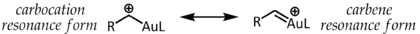 Cationic gold(I) forms π-complexes with alkene or alkyne bonds, following the Dewar–Chatt–Duncanson model. Gold is certainly not the only metal showing this type of bonding and reactivity, several metal ions isolobal with the simple proton (i.e., an empty s-orbital) do as well: for example, mercury(II) and platinum(II). Electrophilic ions and complexes such as these with a strong propensity to form π-complexes are generally known as pi(π)-acids (see also: cation–pi interaction).[16]