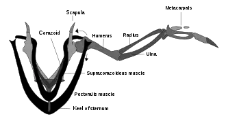 There has been debate about whether Archaeopteryx could really fly. It appears that Archaeopteryx had the brain structures and inner-ear balance sensors that birds use to control their flight.[134] Archaeopteryx also had a wing feather arrangement like that of modern birds and similarly asymmetrical flight feathers on its wings and tail. But Archaeopteryx lacked the shoulder mechanism by which modern birds' wings produce swift, powerful upstrokes (see diagram above of supracoracoideus pulley); this may mean that it and other early birds were incapable of flapping flight and could only glide.[127]